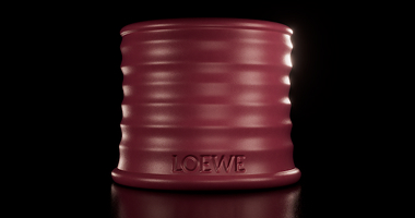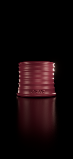 A stylized 3D animation exploring the transformation of liquid into a sculptural form. Streams of glossy red fluid rise and intertwine, gradually shaping an abstract organic structure above a minimalist pedestal engraved with the LOEWE.